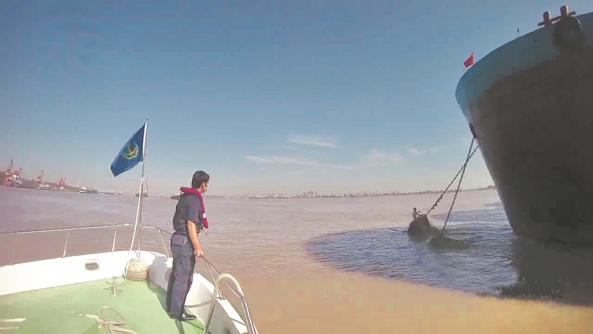 执法人员立即展开救援行动,因贺先生附近有多根锚链,且江水流速极快,海巡艇难以靠近。执法人员就向贺先生抛投带绳索救生圈,待贺先生抓稳套牢后,执法人员合力将他缓缓地拉到海巡艇上。经初步检查,贺先生身体并无大碍,执法人员将其护送至长江航运公安部门。
