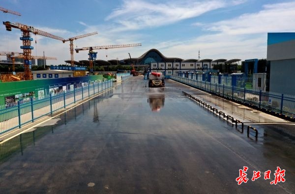 项目负责人张先忠说,这条道路是施工车辆的必经之路,也是一条规划的市政道路,他们将市政道路规划建设和施工便道结合起来,提前硬化路面,不仅解决车辆行驶造成的扬尘问题,也为后期道路建设节约了成本。“项目完工后,这条道路再重新铺一层沥青,就可以达到市政道路使用标准。”