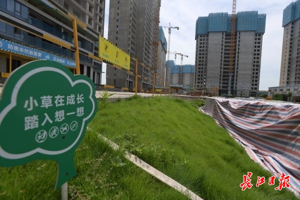 随后,记者又来到位于汉阳国博E4地块的一处房建项目,一进工地,便被路边一块块整齐的绿色草坪吸引,绿草如茵,一看就不是临时种植的。“进场前,绿化先行,去年5月铺设了草坪,还种植了很多树木,目前工地绿化覆盖率达20%。”施工方华南建设项目负责人朱云说。