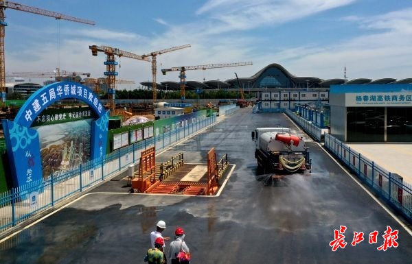 汉口客运中心项目工地裸土全覆盖。记者刘斌 摄