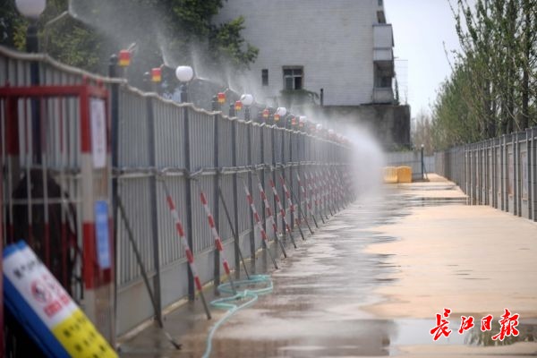 打开开关,一圈圈水雾喷洒出来,既解决了工地扬尘,同时也对树木进行了养护。汉阳市政项目负责人杨彪说,武昌生态文化长廊主要以景观工程为主,其中包括绿化、慢行系统等,如果短时间内扬尘较大,就会启动园林的喷洒系统,一同进行降尘。“这是将智能喷淋和园林喷灌系统结合,进行双重防控扬尘。”