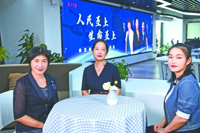 武汉市第三医院院长黄晓东(中)和武汉市第三医院光谷院区重症医学科、急诊科主任付守芝(左)参加院长访谈。