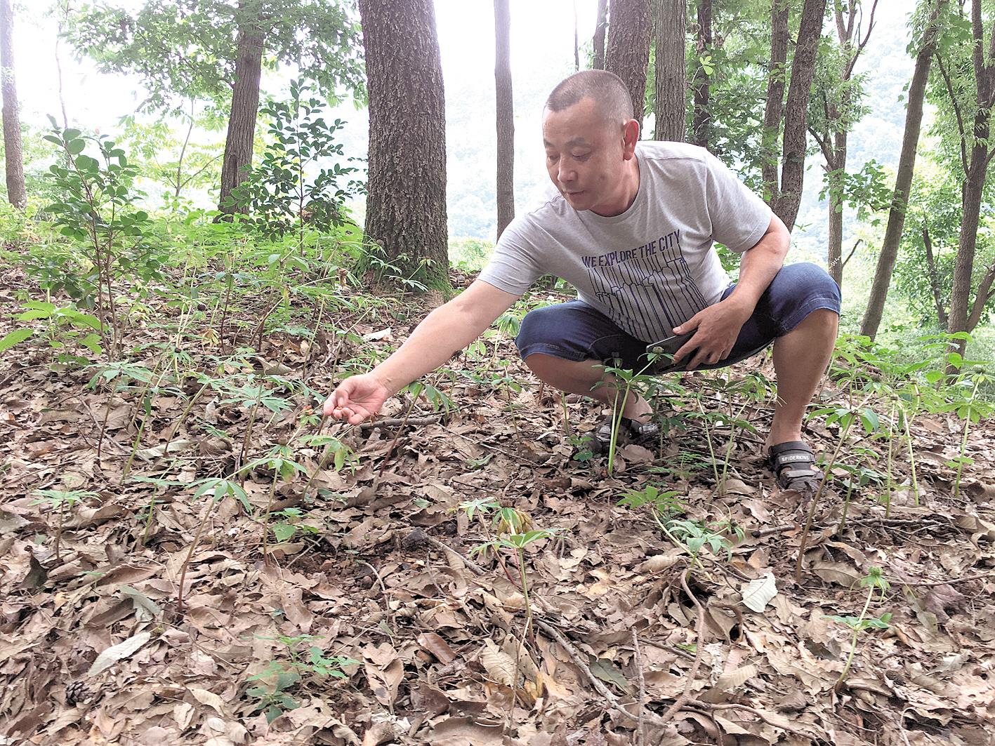 在孟开武的指导下,令德国将挖回来的重楼种到屋后树林里。现在,他种植重楼10多亩,价值约20万元。“他现在见到我就拉我喝酒。”孟开武一脸高兴。