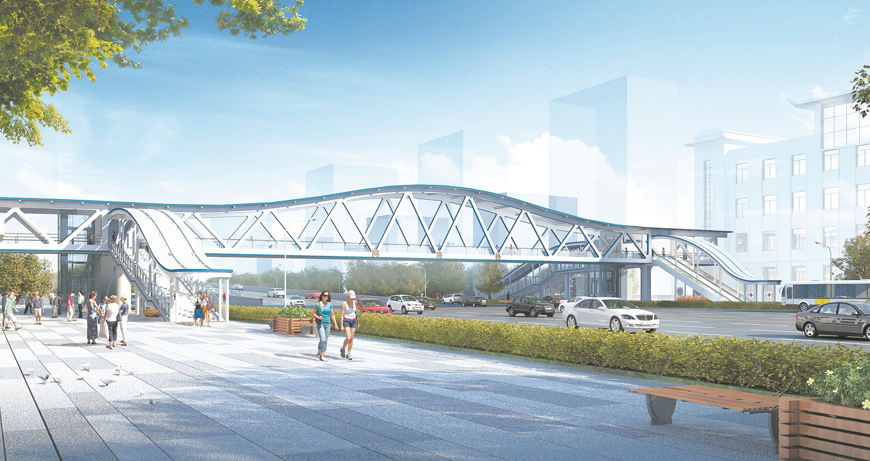 建设方武汉市城投集团公司相关负责人介绍,同济医院生殖中心人行天桥主桥横跨交通繁忙的解放大道,北接同济医院门诊主楼,南连同济医院生殖中心,天桥主梁全长55.2米,天桥两端共设计4个出入口,安装自动扶梯2部,并设置了1:2的梯道,从空中俯瞰整个平面设计就是一个“工”字。