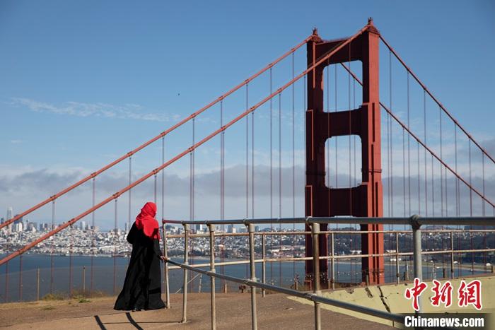 当地时间7月21日,游客在美国加州旧金山金门大桥附近游玩。