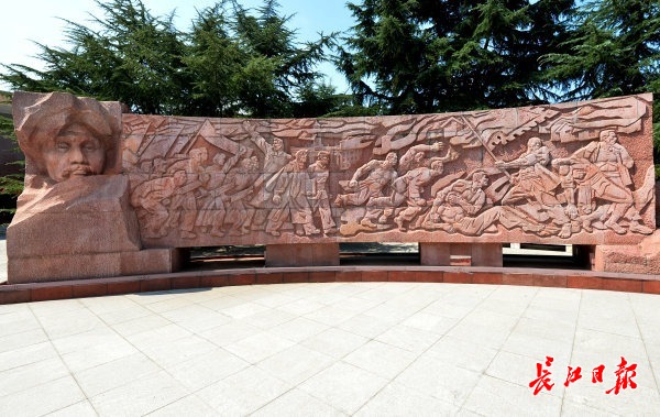 武汉二七纪念馆门前的浮雕反映二七大罢工场景。记者喻志勇 摄