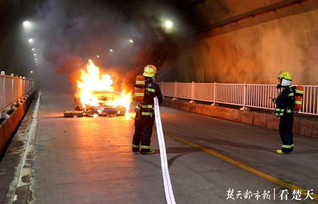 无独有偶。8月5日清晨7时16分,通山县牛头山隧道内轿车起火,情况紧急。接到报警后,通山县郑家坪消防救援站迅速赶赴现场进行处置。