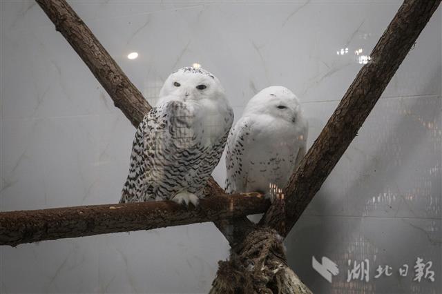 2020年8月7日,在武汉海昌极地海洋公园内,雪鸮通过空调降温消暑。