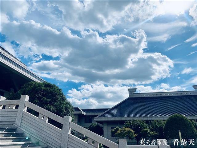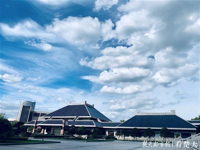 近日,武汉高温晴热,天际线辽阔,蓝天白云,拍起照片来特别好看。“武汉蓝”下的湖北省博物馆,也别有一番韵味,就通过这一组图片好好领略下它的魅力吧。
