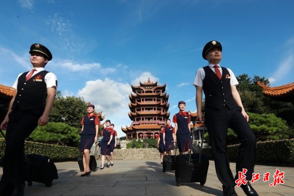 长江网8月7日讯 8月8日开始到今年年底,包括“十一”黄金周在内,湖北省近400家A级景区对全国游客免收门票。其中武汉A级景区免费开放活动于8月7日15:30正式启动预约,包括黄鹤楼、欢乐谷等23家A级收费景区。8月7日, 武汉铁路局武汉客运段高铁乘务员利用休息时间,打卡武汉地标黄鹤楼景区,为家乡旅游助力,欢迎全国各地的游客来武汉旅游。(记者肖僖 通讯员郭玉琴 摄影报道)
