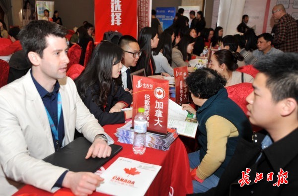 2017年,留学教育机构招生咨询会现场火爆,而今年这样的咨询会武汉线下还没举办过。 记者李子云 摄