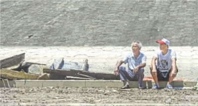 8月6日,汉阳江滩,老渔民李世华(左)、刘建汉完成自家渔船的拆除。长江日报记者胡冬冬 摄