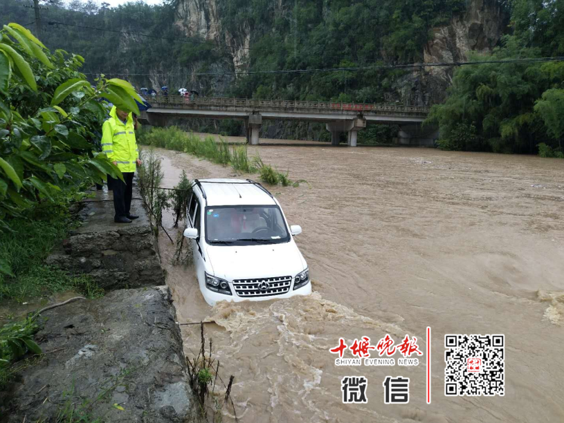 目前茅塔河河水还在上涨,暂时无法施救车辆。