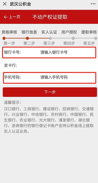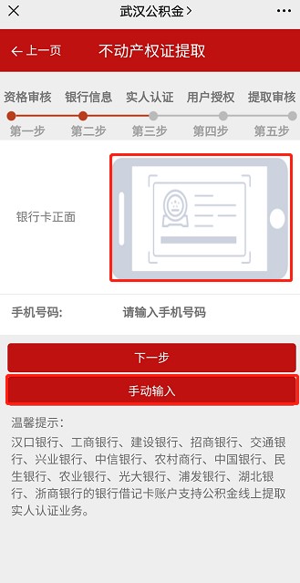 记者看到,她在登录微信公众号“武汉公积金”后,就在提示页输入了自己的用户名及密码,在提取申请交易选项中选择“不动产权证提取”。进入提取界面后,她在阅读并勾选了相关文件,进入“下一步”。之后,她根据下一页的提示,通过手机拍照上传了身份证、银行卡及手机号等个人信息。