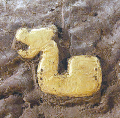 行唐故郡车马坑的兽形金饰。