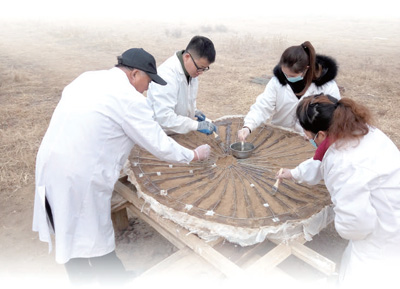 行唐故郡车马坑车轮保护现场。