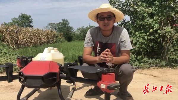 操作无人机的年轻人叫王迎,是武汉百年稻香生态农业专业合作社的理事长。2016年,在外闯荡打工的小王见父母年事已高,萌生了返乡创业、带动家乡致富的想法,并于当年回到东荆街南丰大队务农。