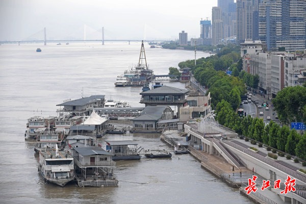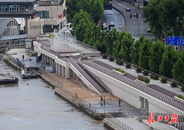 长江网8月9日讯 8月9日,长江武汉段水位持续回落,武昌中华路城市阳台亲水平台已露出江面,工作人员正忙着洗刷清洁。记者苗剑 摄影报道