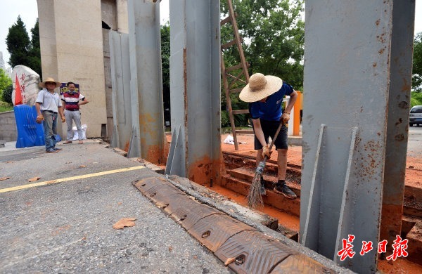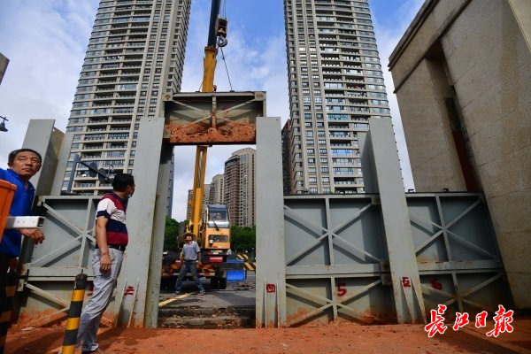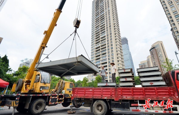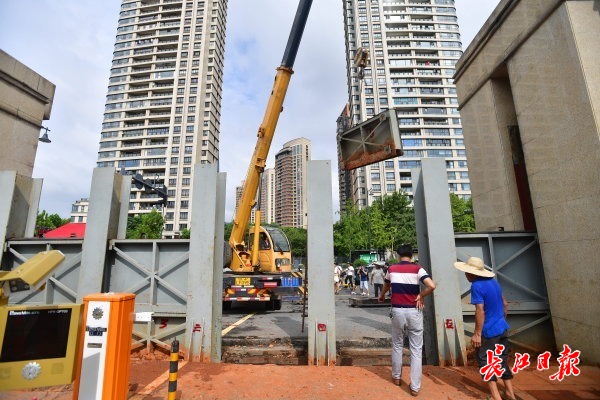 一块、两块、三块……一块接一块的闸板被稳稳放在闸口外。“将闸门拆除以后,我们会把底下用于固定的螺丝钉好好保养一下,然后用提前准备好的钢板把凹下去的闸口底部铺平。”朱继江告诉记者,最后再铺一层沥青,汉口江滩黄浦路闸口就能恢复原样了。