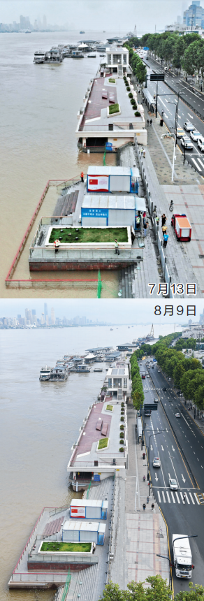 今年,汉口江滩系2002年建成以来第一次全面过水行洪,从7月11日开始封闭管理。