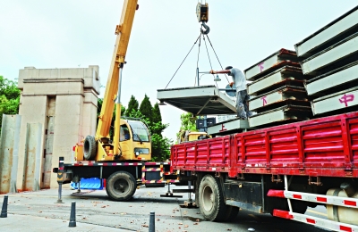 黄浦路闸口正在拆除最后一块闸门钢板。