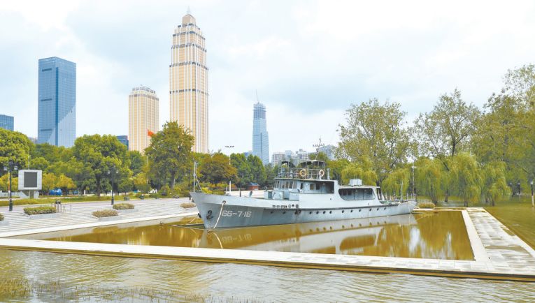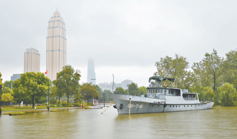 今年长江水涨水落之际,汉口江滩横渡长江博物馆“镇馆之宝”——“66—7·16”艇安然无恙。6月17日汛期到来前的“66-7·16”艇。
