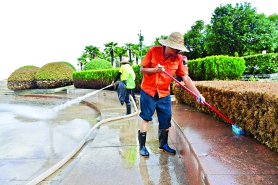 据介绍,汉口江滩管理办公室场馆部每天出动70人、4辆冲洗车、2辆洒水车、1辆平板车清淤消杀。工作人员还做好了卫生间外墙、地面和内墙壁的保洁工作。