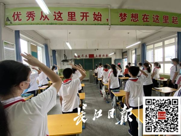 在八(2)班,为让学生们找回学习状态,班主任老师带领全班背诵《岳阳楼记》,学生们信心满满,个个都能背诵下来。