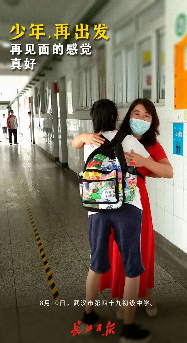 “感谢你们这一个春天的努力与付出,感谢你们保护好了自己,感谢你们在没有老师监督的情况下认真学习。”初二(1)班班主任王雪梅伸出双臂,用力拥抱每一个孩子。师生亲切“熊抱”,重逢的场面其乐融融。