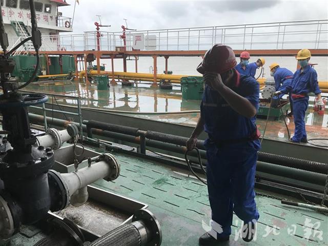 “从7月11日到8月4日,由于汛情影响,没有油轮来卸油,油库库存已经消耗大半。”阳逻油库党支部书记肖生祥一边说着,一边匆匆走向油库码头。最近一周,汛情缓解,油船恢复了运油,接油趸船任务很重,已经日夜不停地接了7艘船,收入成品油19011.319吨。