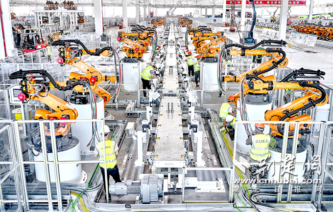 装配车间·行业首创双色弧形灯廊。(通讯员 供图)