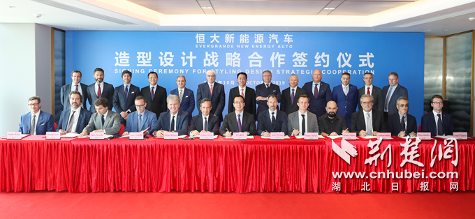 恒大与15位世界顶级汽车造型设计大师签订造型设计战略合作。(通讯员 供图)