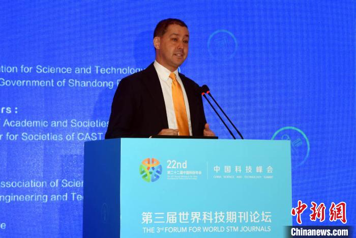 施普林格·自然集团大中华区总裁安诺杰在第三届世界科技期刊论坛上作主旨报告。 孙自法 摄