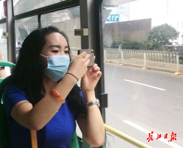 乘坐公交车,一路上车水马龙,雷占玲隔窗望向车外说:“再踏武汉,恢复的繁华,热闹的城市,真好!”