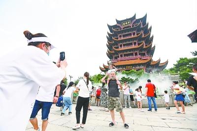 8月11日,在黄鹤楼景区,众多游客来此游玩。记者詹松 摄