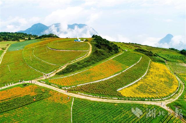 8月12日,游客在秭归县郭家坝镇白云山村大金坪花海休闲游览,乐享暑期美好时光。近年来,该地采取植树植草、水源地保护、面源污染治理、环境整治等多种措施,对山区乡村进行生态修复,昔日的废弃矿山、荒山秃岭成为秀田花海,引众多游客前来休闲游览。(视界网 王罡 摄)