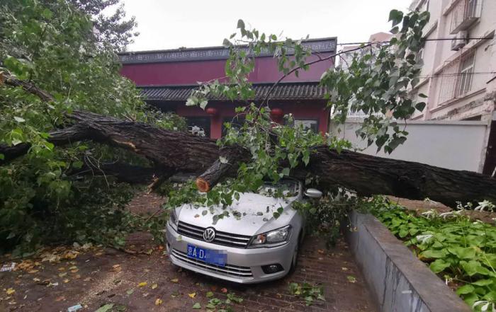 8月12日,北京三里屯南路被大树砸坏的轿车。