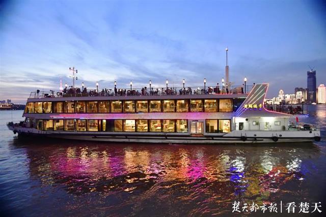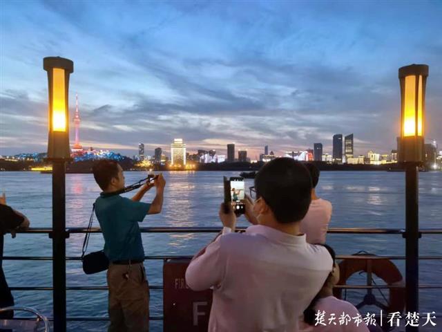 万里长江东去,悠悠汉水西来,两江交汇,三镇鼎立,铸就大江大湖大武汉。长江夜游是江城特色,一直深受游客欢迎。今晚,游客再度乘坐游船亲水纳凉,欣赏久违的长江灯光秀。