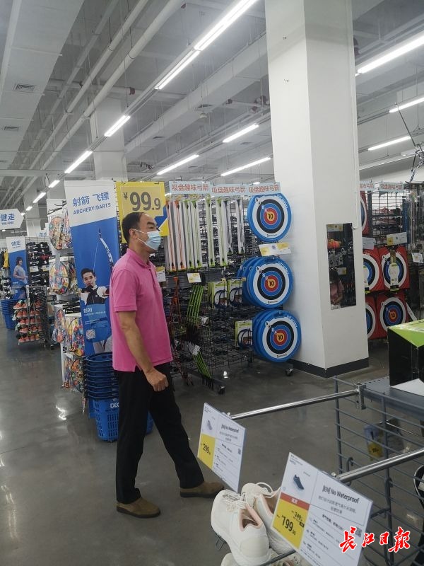 市体育局体育经济处党员干部郑文山在迪卡侬武汉后湖店了解情况。本人供图