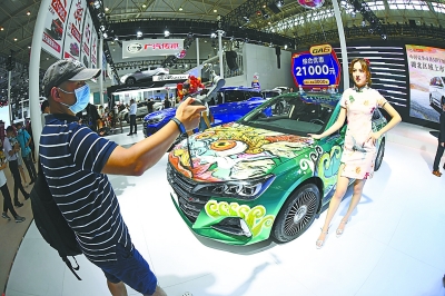 车展上迷你款车型吸引不少市民体验。赵歆 摄