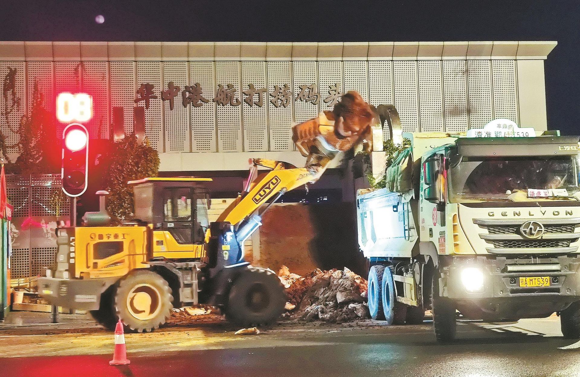 昨日凌晨,武汉市江汉区河道堤防管理所和闸口单位,联合拆除了汉口沿江大道华中港航打捞码头闸口的防汛封堵墙,恢复了闸口原貌。据介绍,目前长江水位已经低于该码头闸口地面标高约1米,经江汉区防办批准,防汛封堵墙予以拆除。楚天都市报记者李辉 通讯员李长林摄