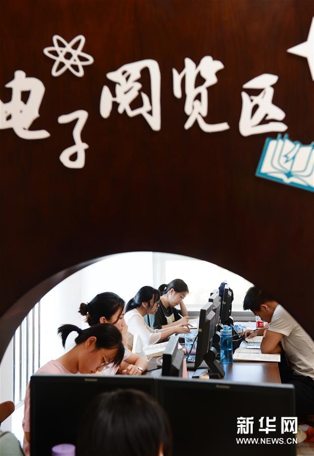 暑假期间,安徽省舒城县图书馆成为广大中小学生及市民学习知识的火热课堂。该馆实行图书借阅一卡通服务,读者凭卡可以在县图书馆和23个乡镇图书分馆、4个城市阅读空间通借通还图书。据了解,暑假期间每天来舒城县图书馆阅读的读者达5000余人次。 新华社记者陶明摄
