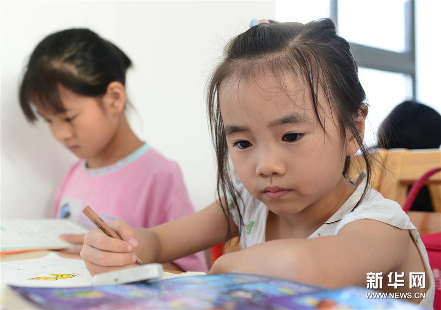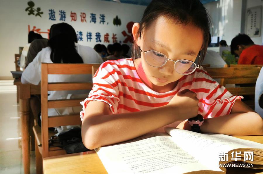 8月13日,一位小朋友在舒城县图书馆阅读。 新华社记者陶明摄