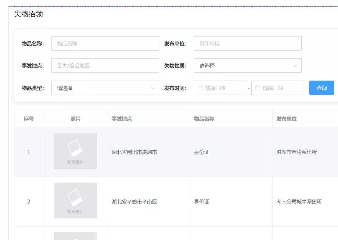 全省范围内,丢失人员可以在平台点击失物招领进行查询。(失物招领信息需辖区派出所进行登记)