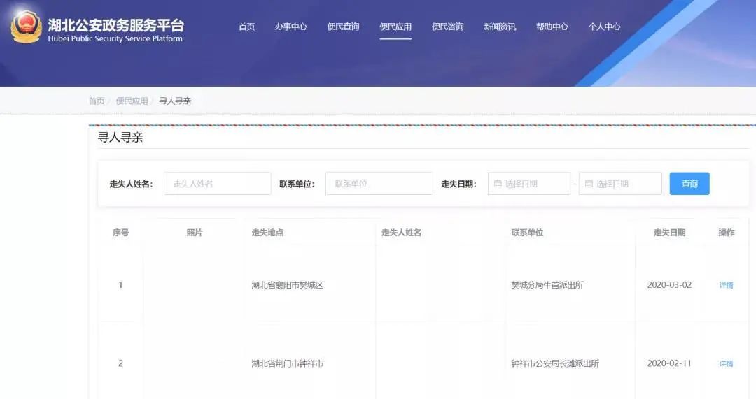 全省范围内,可以登录平台对寻亲人员信息进行查询。(相关信息需辖区派出所进行登记)