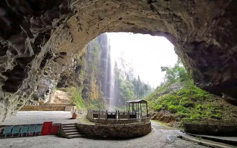 “卧龙吞江”的壮观场景在全国较为罕见的巨型岩溶落水洞。