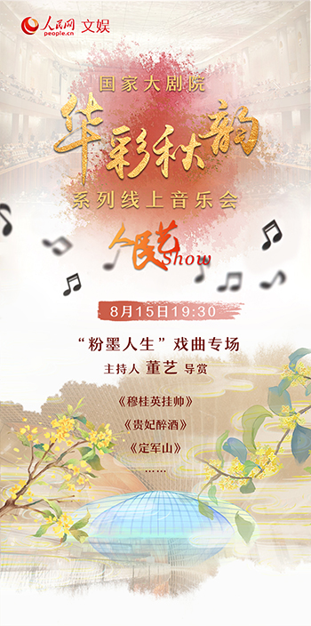 8月15日19:30,国家大剧院“华彩秋韵”线上系列的首场京剧演出即将登陆“人民艺Show”。古筝演奏家尚靖雅将以一曲明朗欢快的《万年欢》率先开场,展现古筝与京剧跨界的魅力。接下来,方旭、胡文阁、迟小秋、李宏图、史依弘、谭孝曾、李胜素、于魁智八位京剧名家将依次闪亮登场,为您带来一台经典名段荟萃的京剧盛宴。