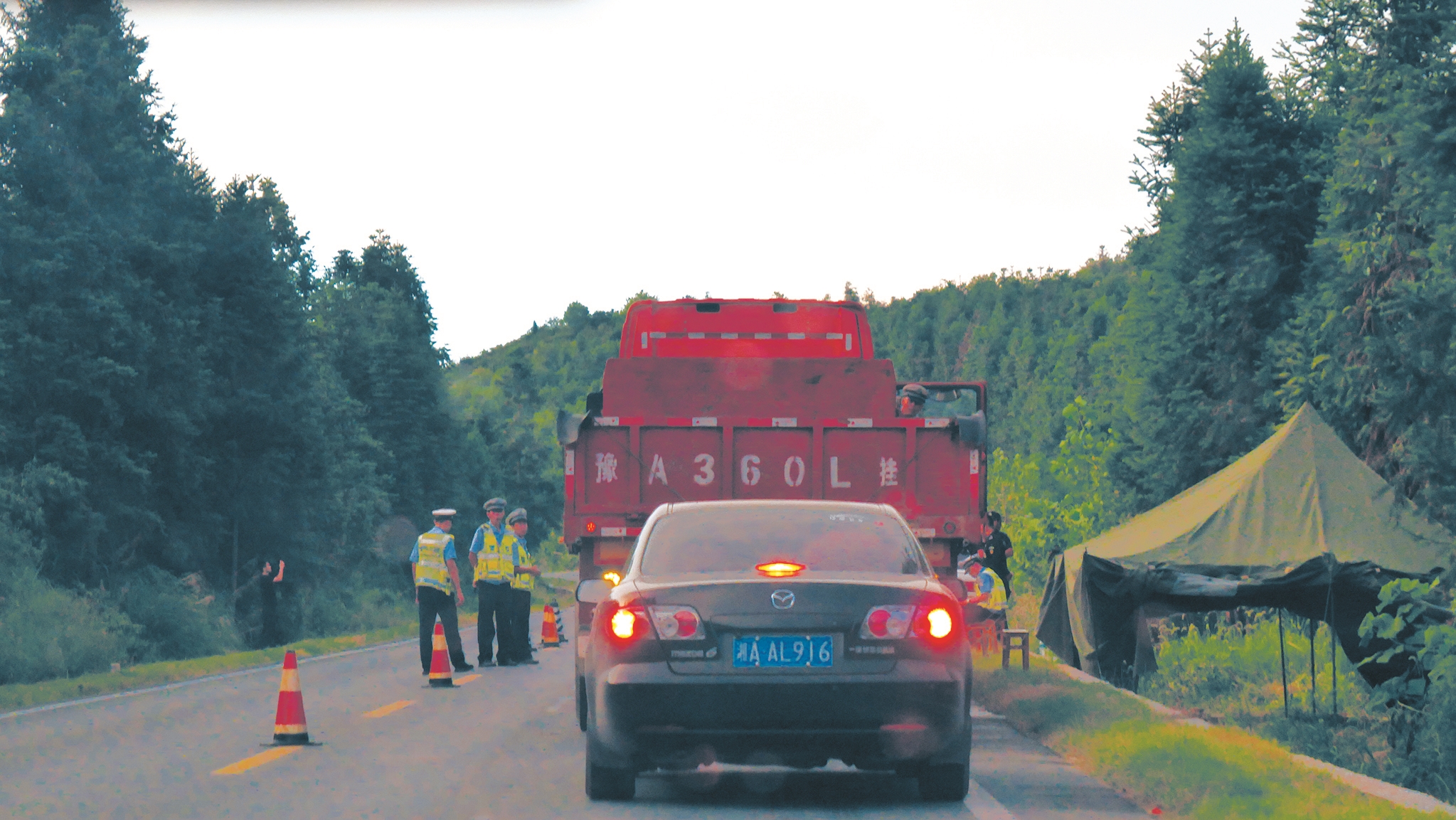 昨日傍晚,记者驱车从山砀镇前往丰城市蕉坑乡,在乐安与丰城交界处,民警先后两次对车内人员和后备箱进行检查,而前日记者路过该处时,只检查了一次。记者从蕉坑乡返回山砀镇时,也有民警设卡检查,而前日并没有人员对进入山砀镇的车辆进行检查。