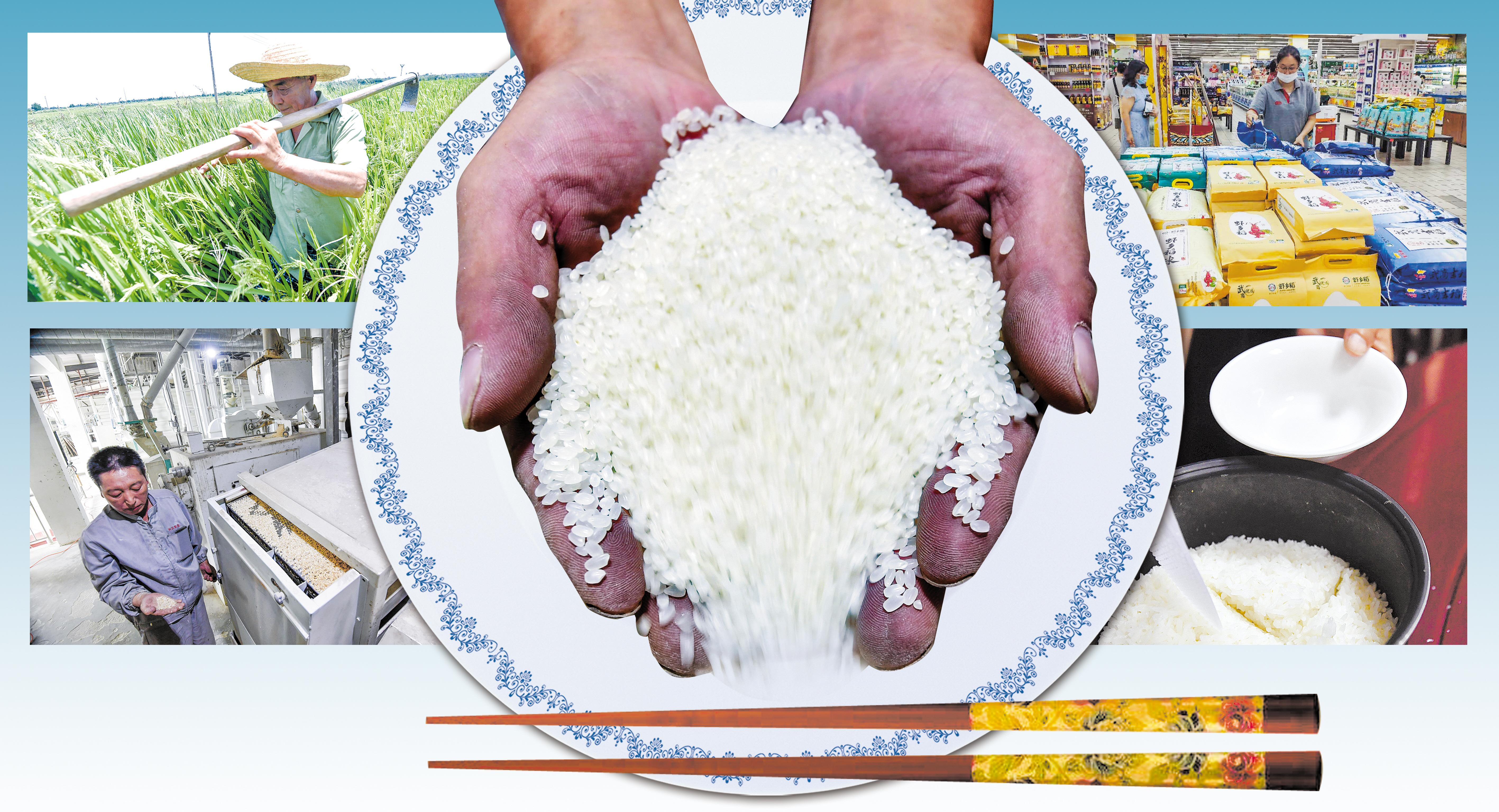 从一粒饱满的种子,到郁郁葱葱的稻田,再到秋收时节满地金黄,挥镰拾稻,亮白如玉的大米走上百姓餐桌。