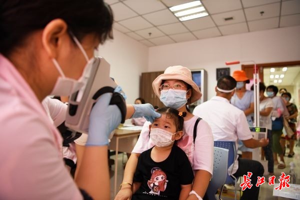 长江网8月16日讯 近日,天气炎热,又是幼儿入园体检高峰时期。硚口区妇幼保健院干部职工坚守岗位,在防控疫情常态化工作前提下,定期进行院内消杀,实行分时段预约就诊,预检分诊处扫码量体温等措施。同时,为前来体检的市民提供方便,切实做好防暑降温工作。(记者金振强 通讯员丁霞 龚俊丹 摄影报道)